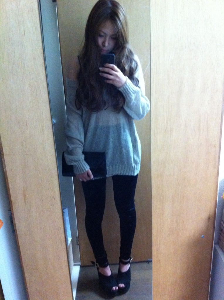 ニットとレギンスではフツーになってしまうので、