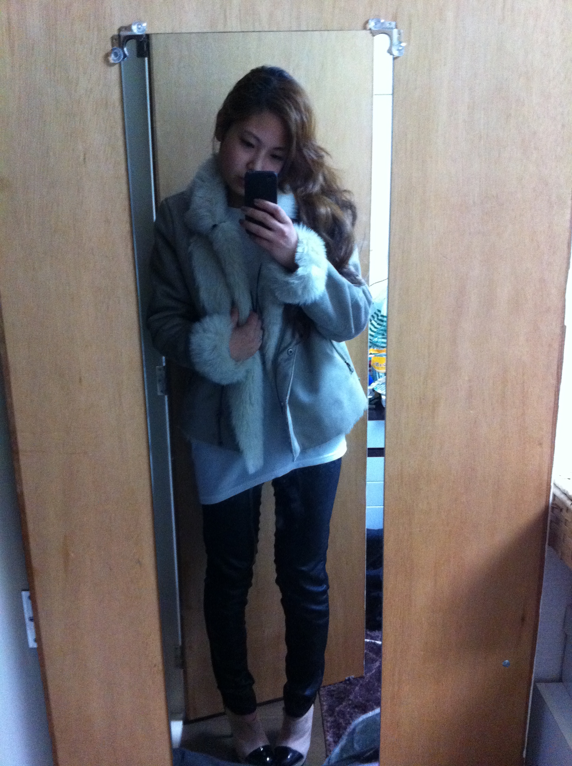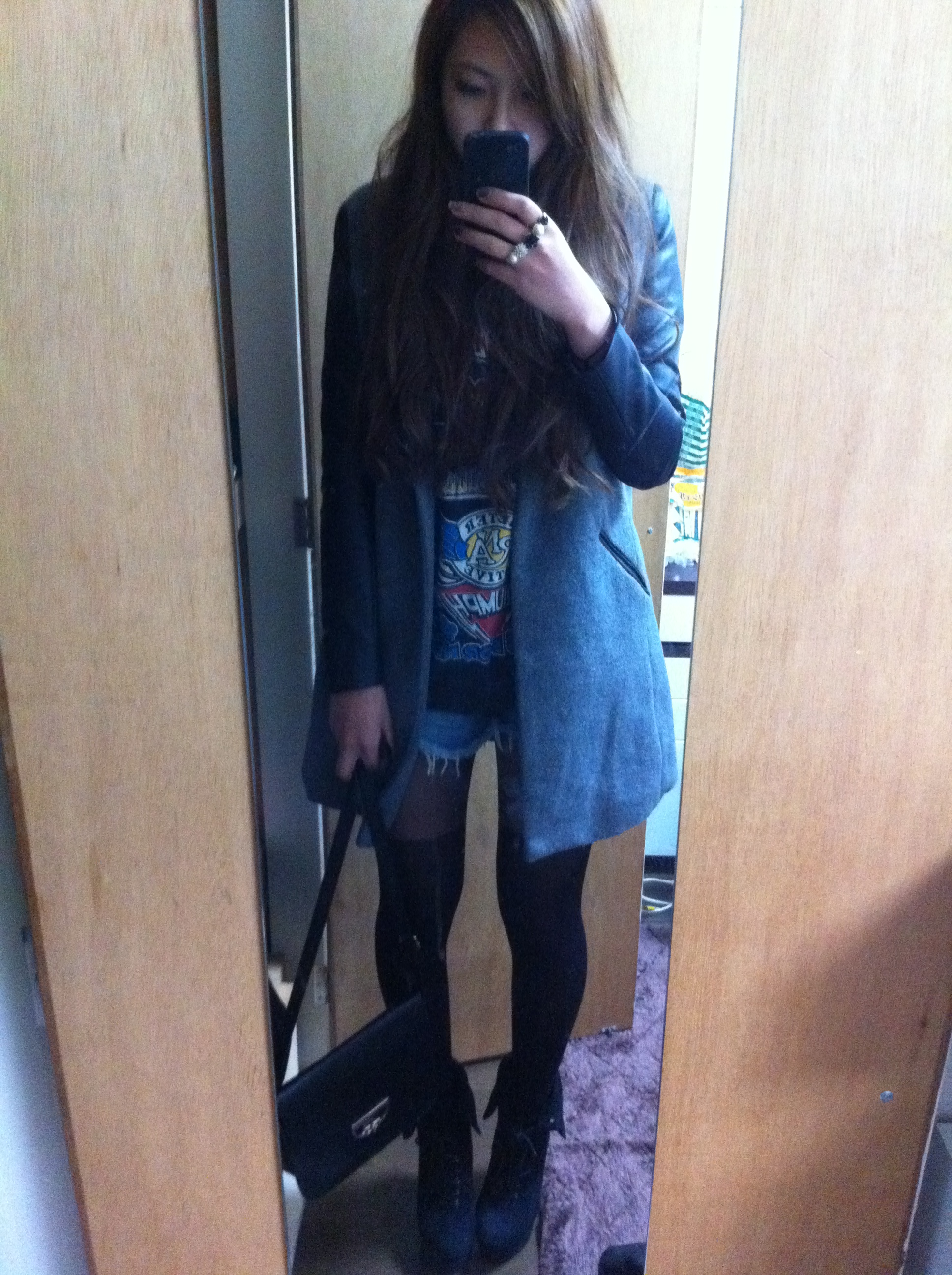 全体的に黒の服が多いので、アウターはグレーにしました!