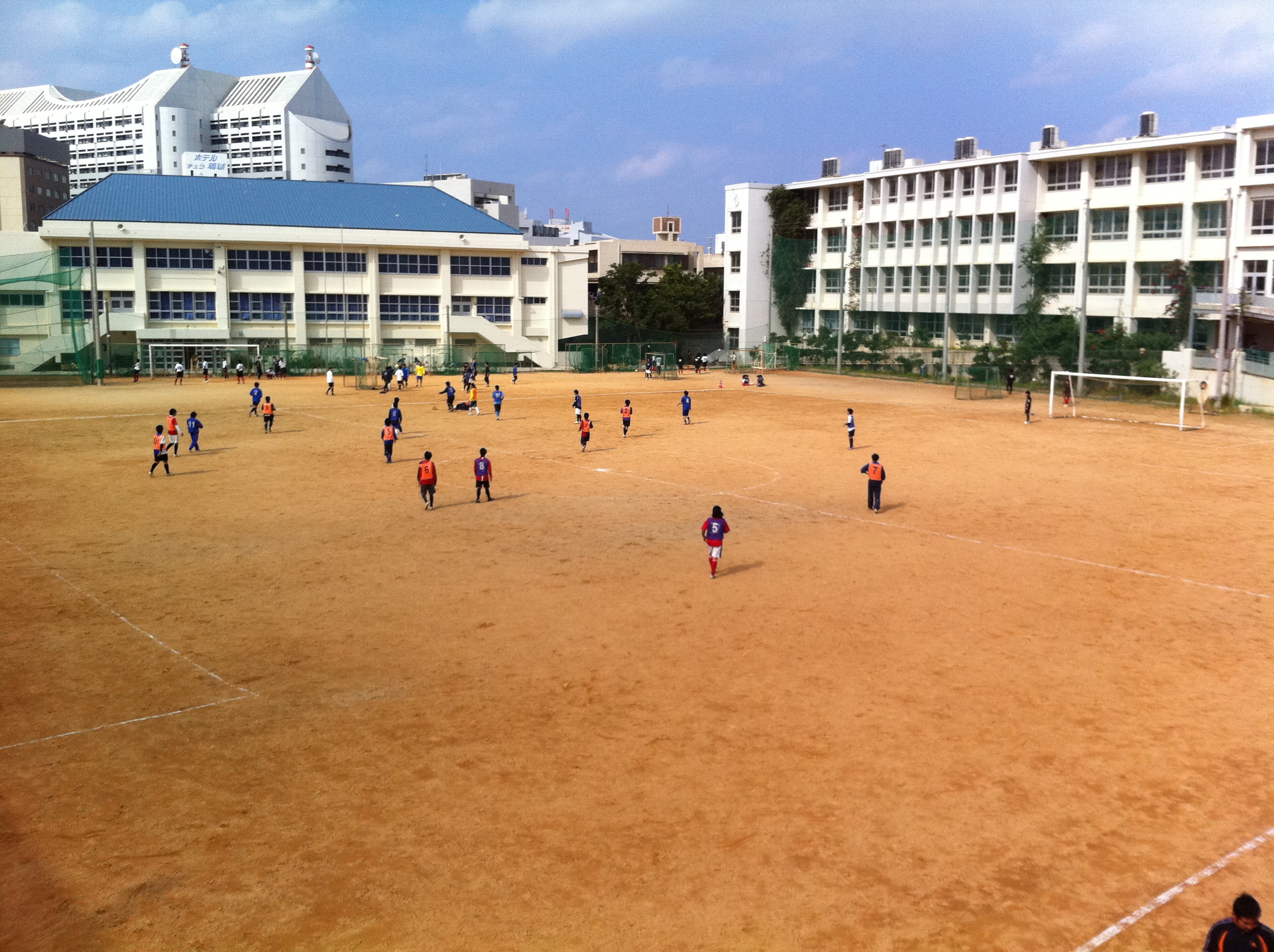 母校。たまには彼女らしく、サッカーの応援。