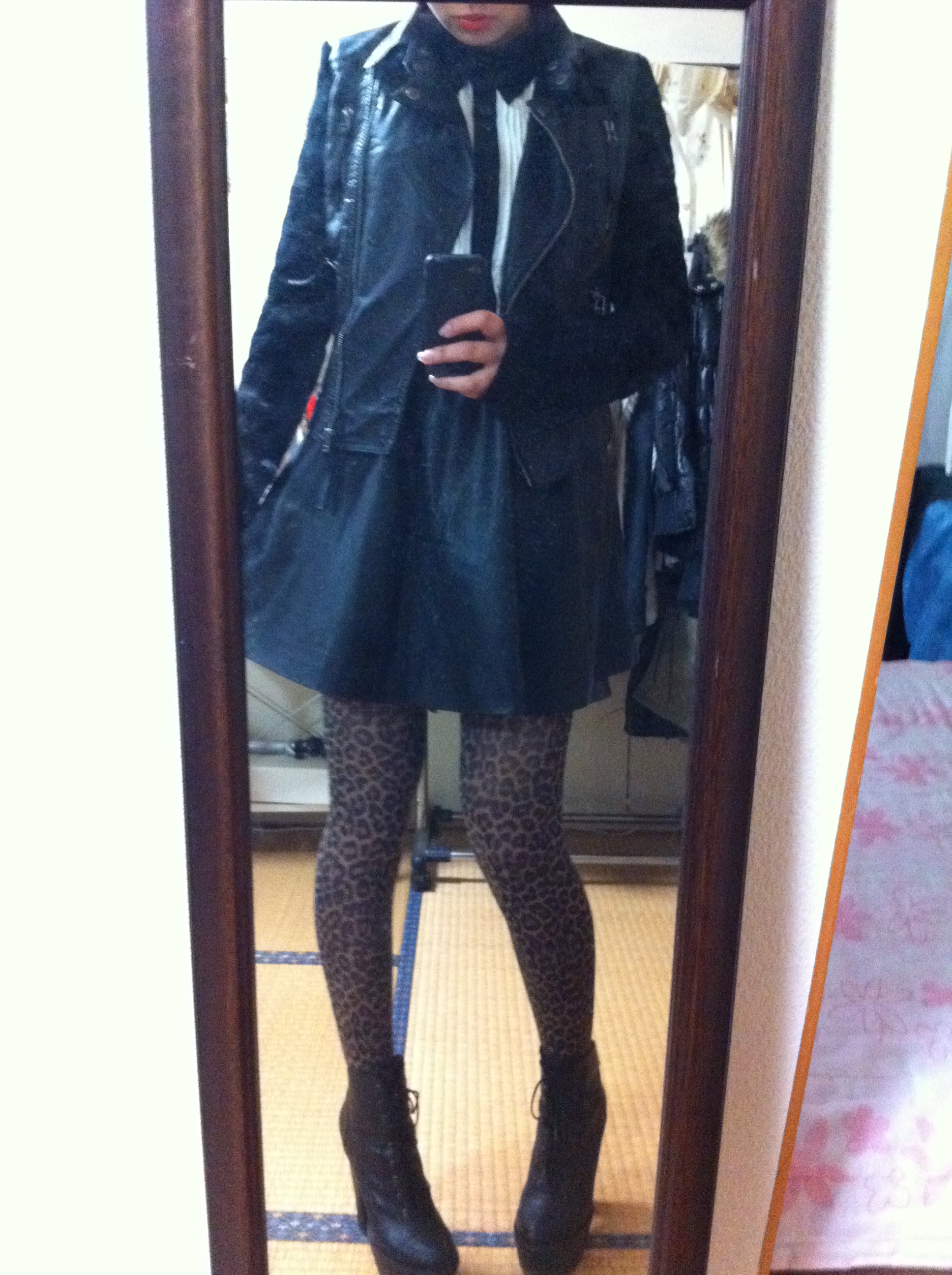 テーマは「ヒョウ女」。レザー×レザーでハードね。