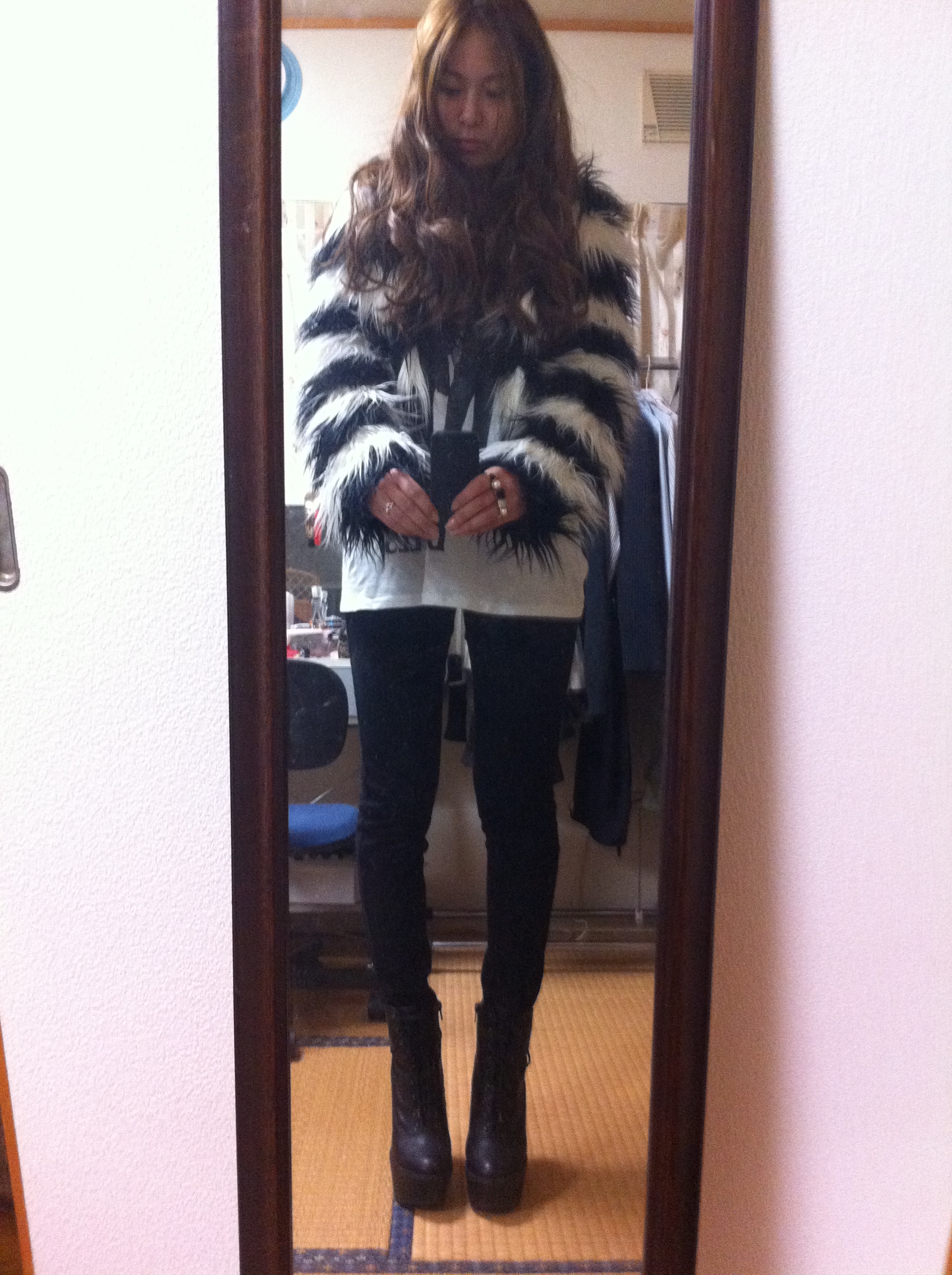 ちょいとお使い。沖縄でファーコートなんて!って母。