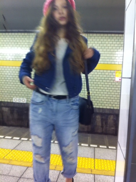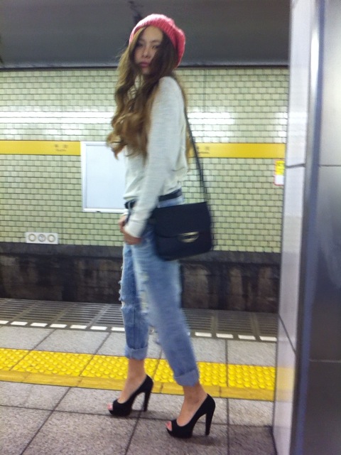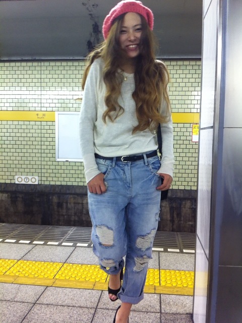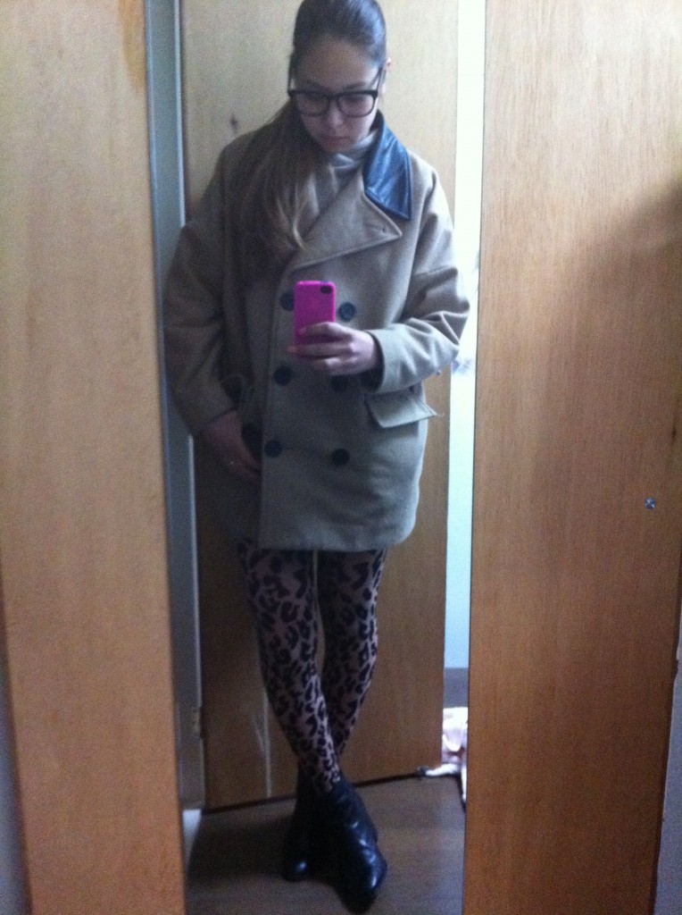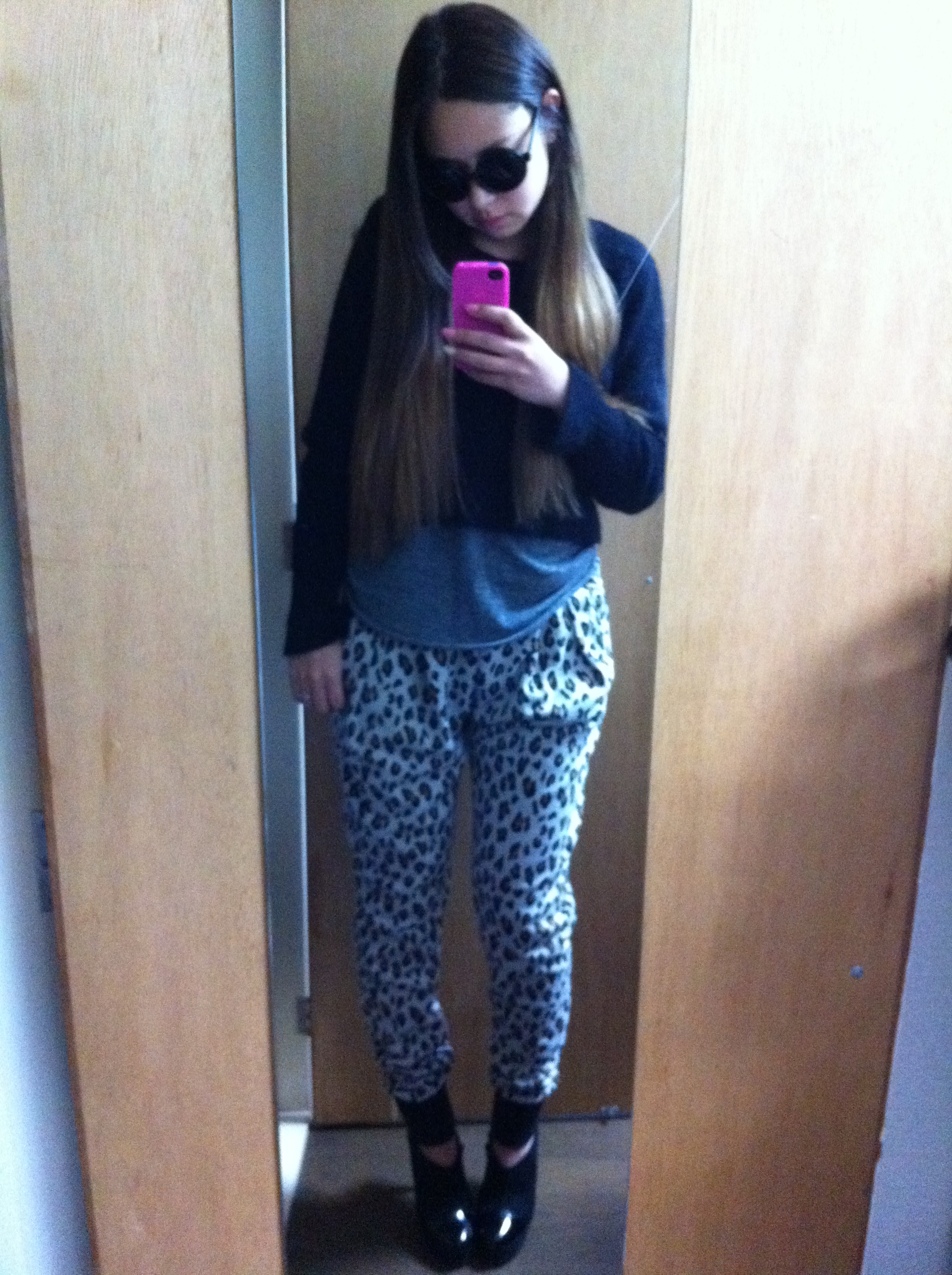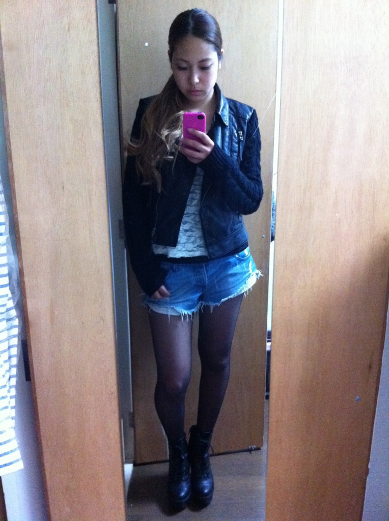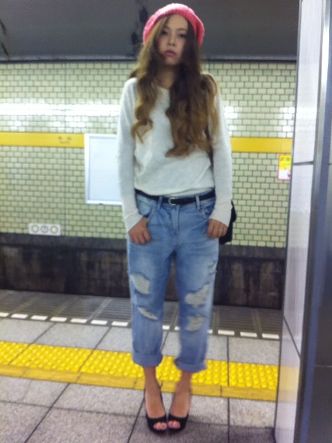 だけでは、ラフすぎるからヒョウ柄タイツでアクセント♪