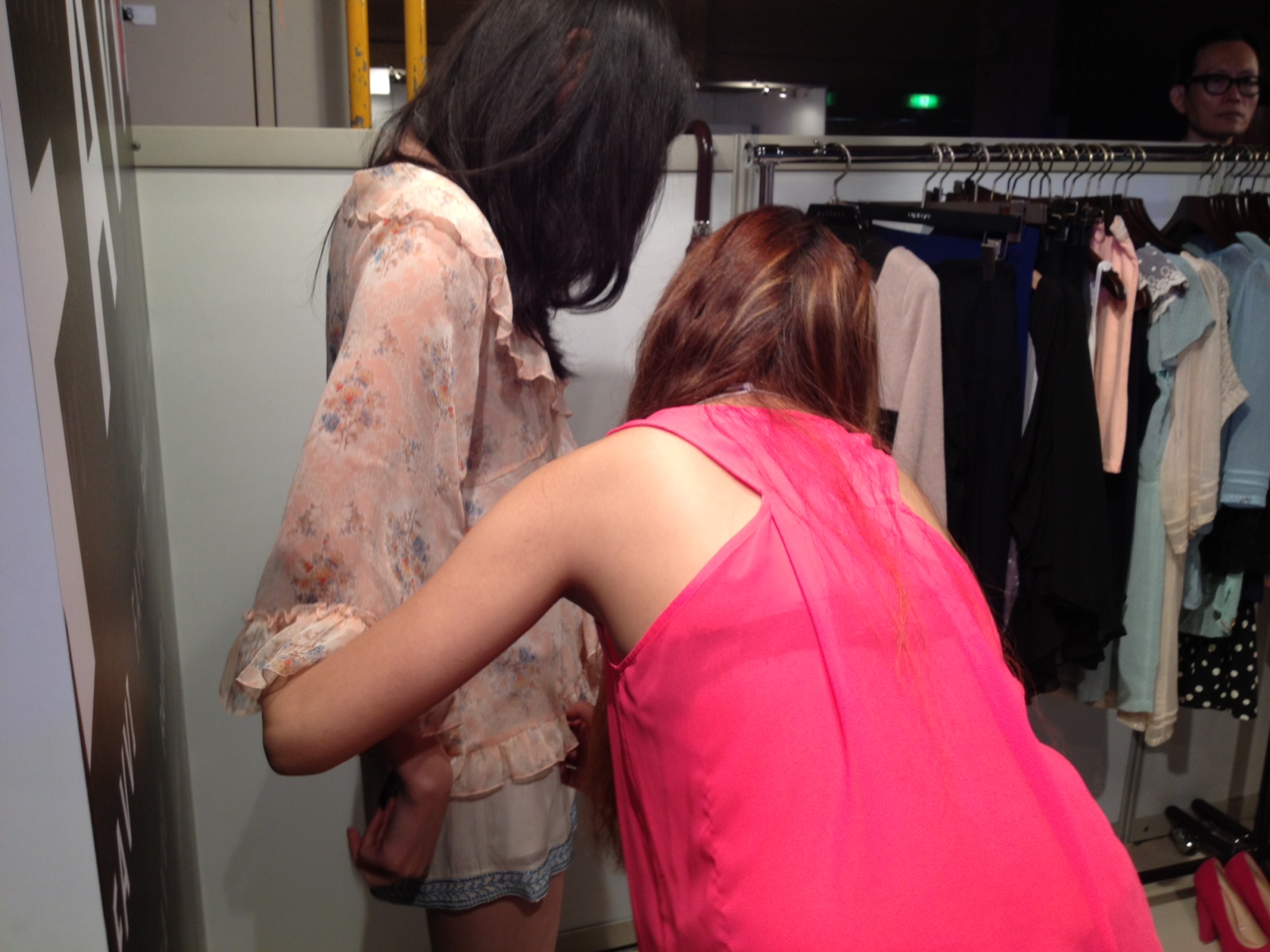 ずら~っと並ぶブース内の洋服から似合いそうな選んでコーディネート☆