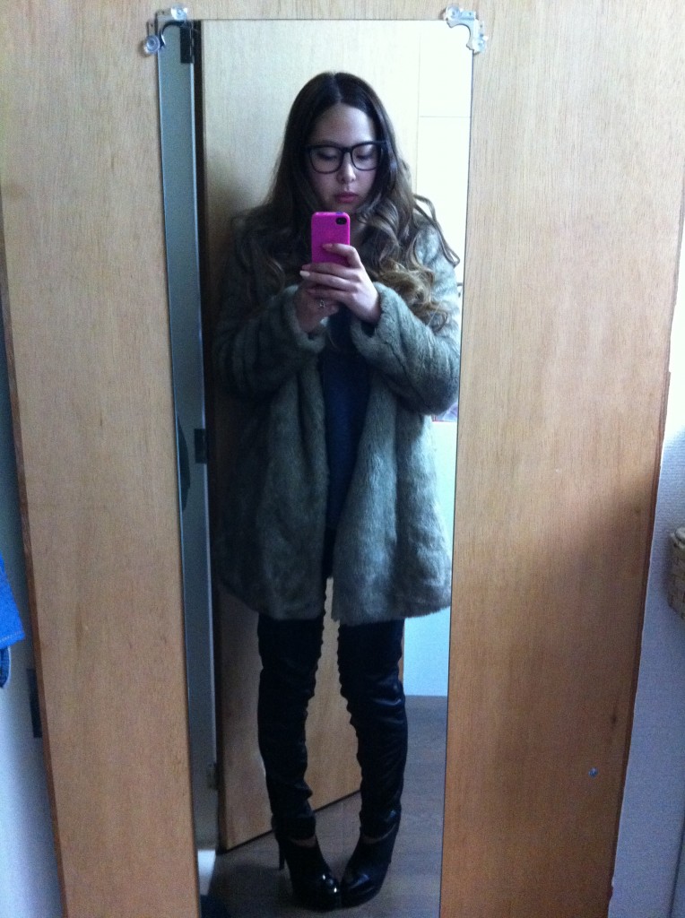 ☆ファーコート羽織って、スウェットをランクアップ目的