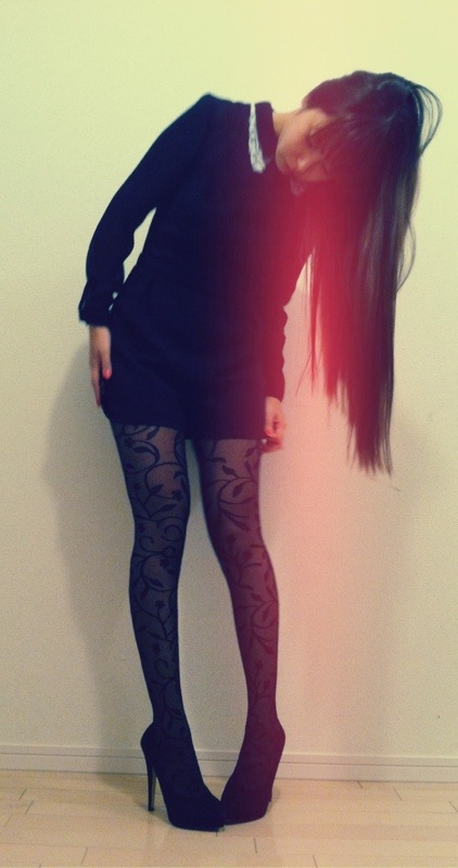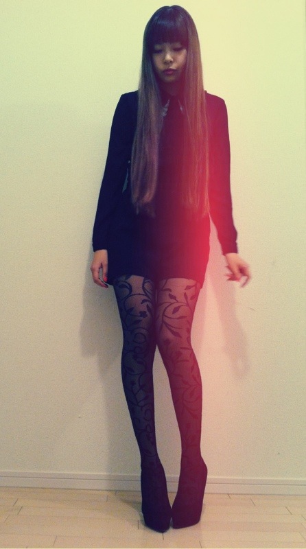 シンプルなアイテムだから、EGOISTのプラント柄タイツをチョイスして、オシャレ度UP♡