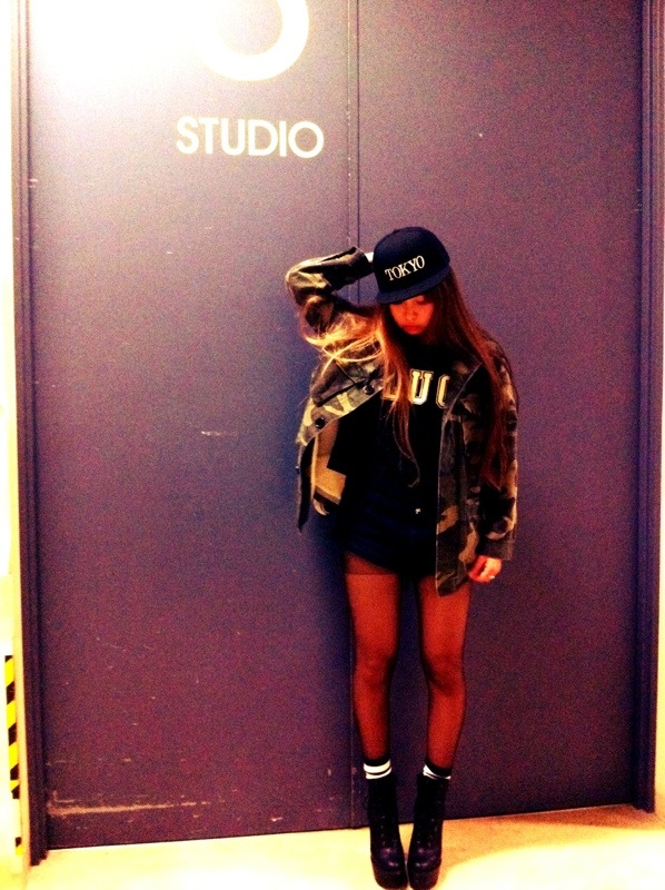 いつもなら15デニールのうすいタイツを合わせるけど、お腹出して寒そうに見えるから今回は50デニール♡