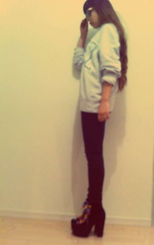 スウェット×スキニーだけじゃ、手抜きコーデに見えちゃうかもなので、シャツを仕込んでオシャレ意識♡笑