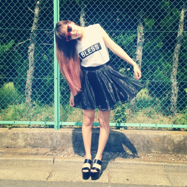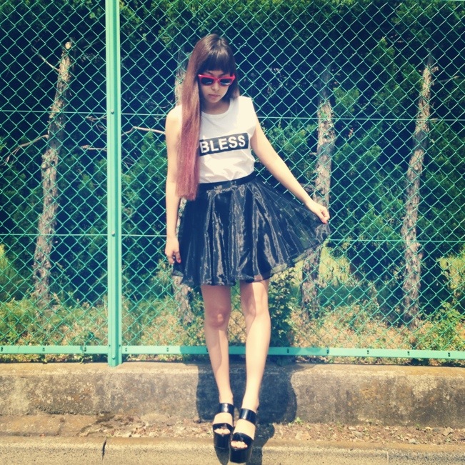 まずは、オーガンジーのフレアスカートにインしてガーリースタイル♪