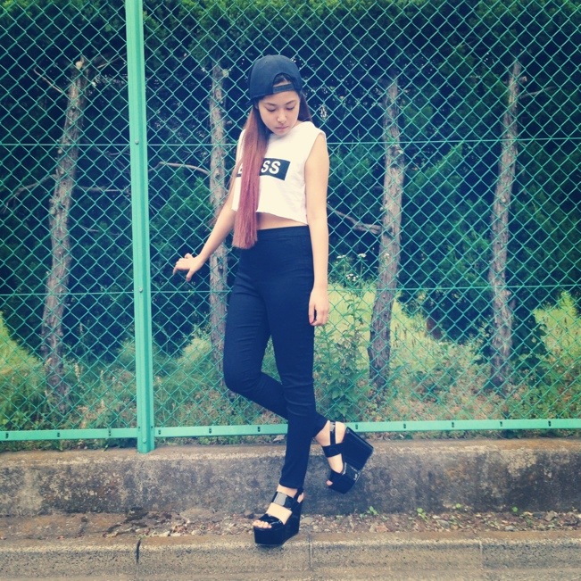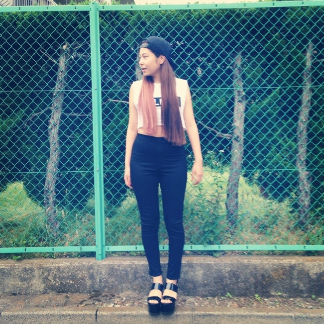 タンクを短く切って、ハイウエストスキニーを合わせたクールスタイル♪