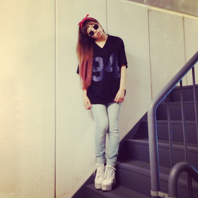 赤のバンダナでポイントつければ、メンズTも良い感じ♡←なにが?笑