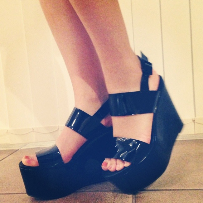 届いたばかりのEMODAのエナメル厚底サンダルを合わせました!