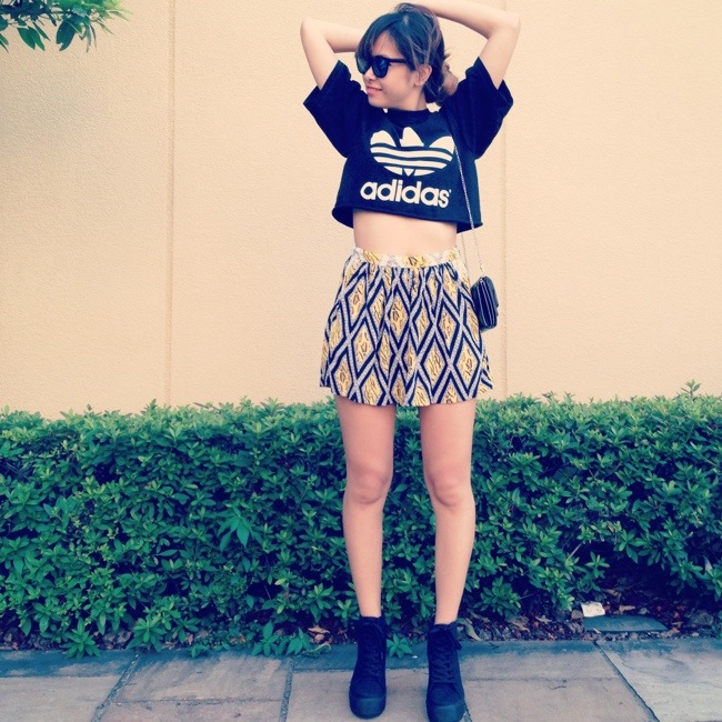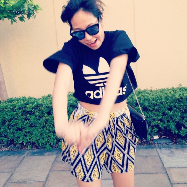 ショートトップスでお腹チラ見えがポイント!!