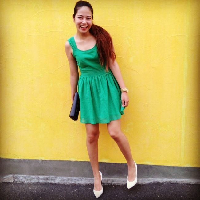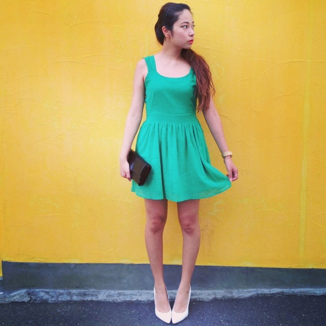 背中がガッツリ空いてるので、髪はまとめて、背中の蒸し刺されアピール♡←