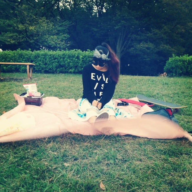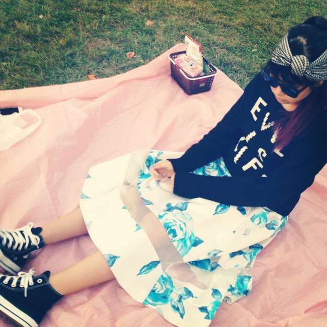 今回はTopshopのサテンの花柄スカートにコンバース♪♪