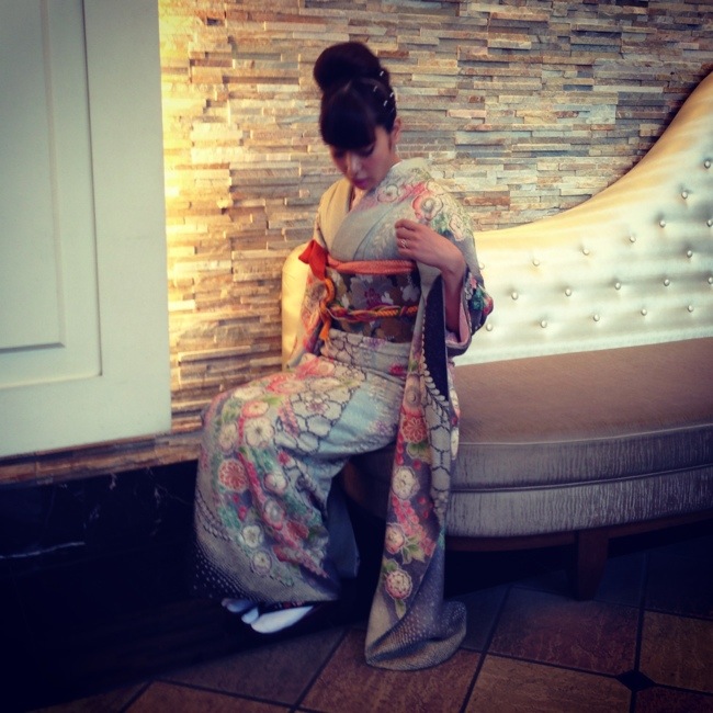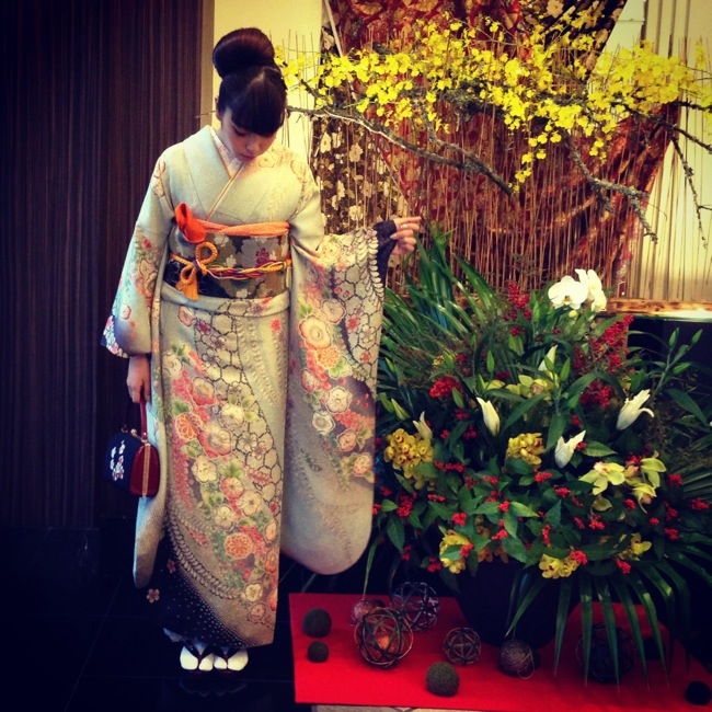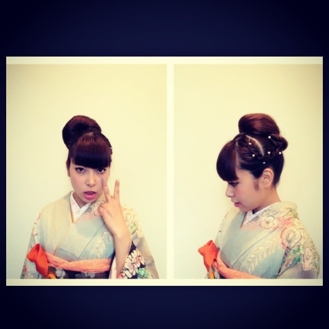 ヘアは和風に!!つるんとしたお団子をナナメに!