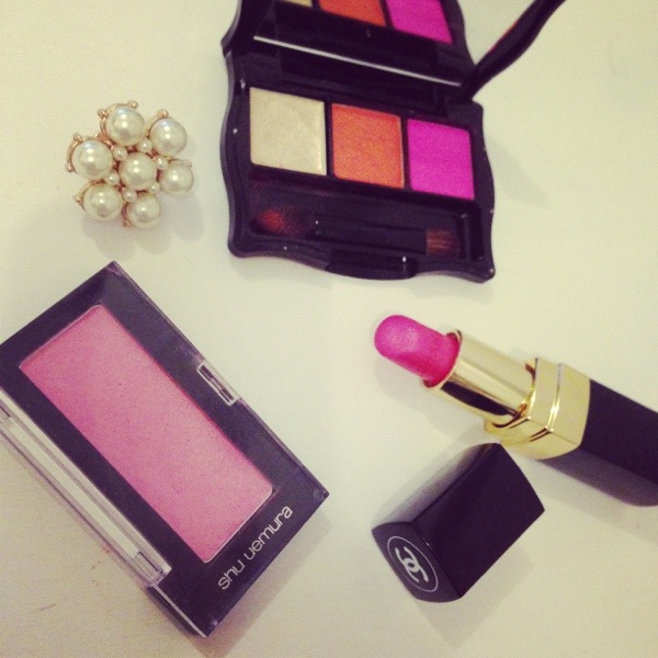 shu uemuraのピンクチークをふんわりと、CHANELのシアーなピンクリップでほんのりと♪