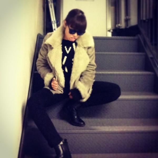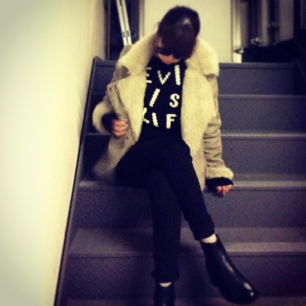 ブラックコーデにムートンを羽織った、スーパーシンプルコーデ♪