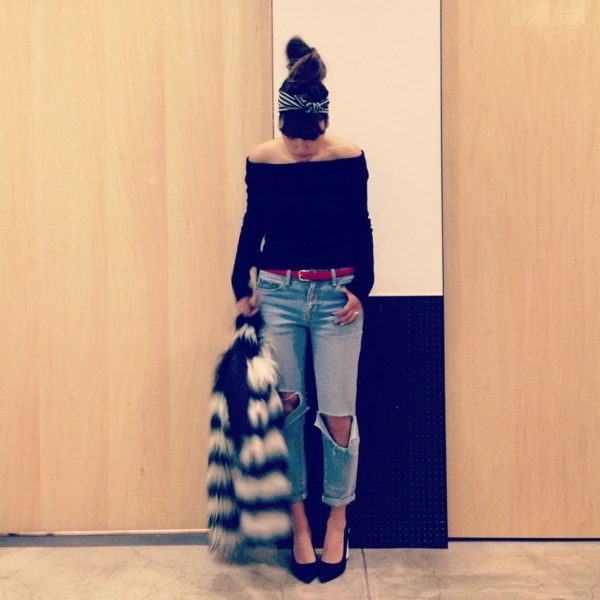 ボリュームのあるファーにはアップヘアもオススメです!