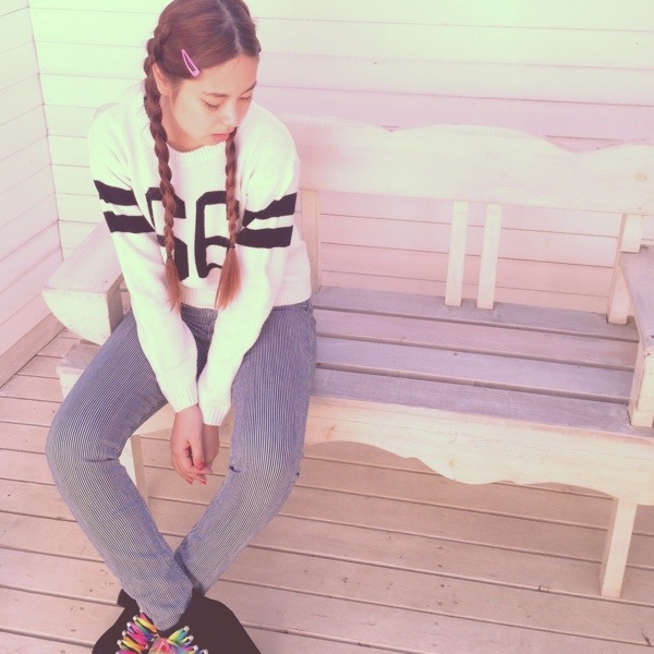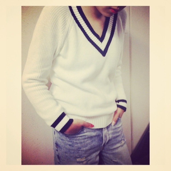 スクール感の強いラインニットは大人に着たいな♡♡