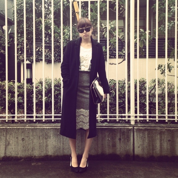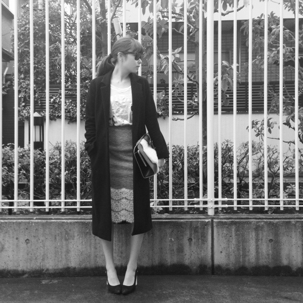 JILKYのロングチェスターコート合わせで I ライン作れば、バランスが難しいペンシルもスタイルアップアイテムになるよん♪♪