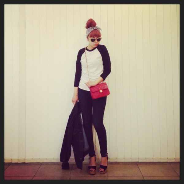 こちらは、トップショップのインディゴスキニーデニムを合わせた、レトロスタイル♡