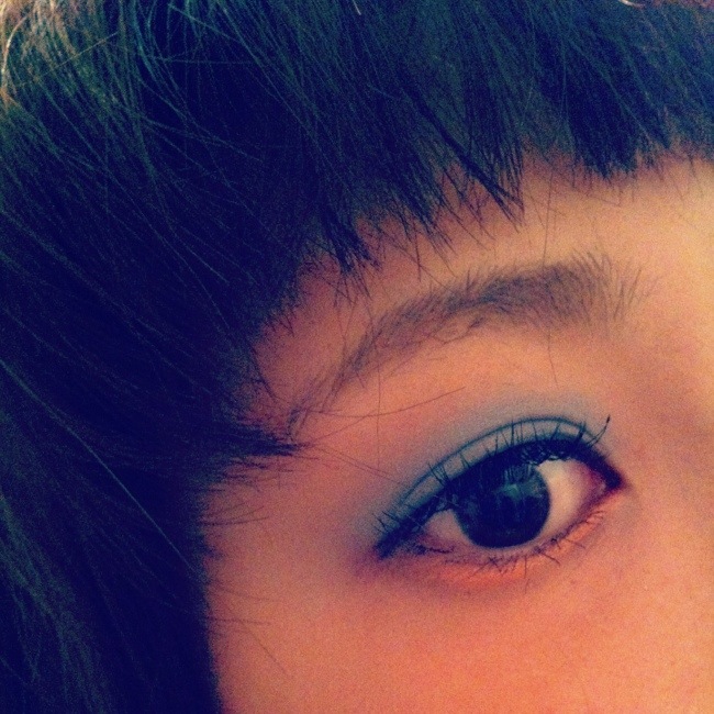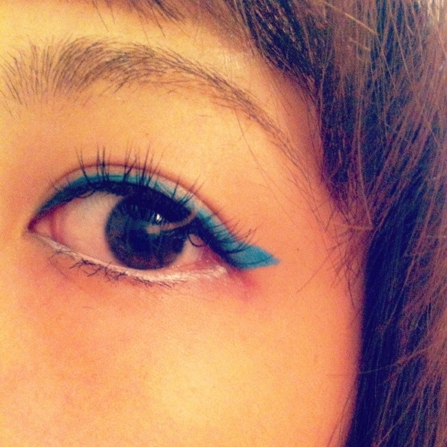 ☆ピーコックブルーの上アイライナーとホワイトの下アイライナーの組み合わせ